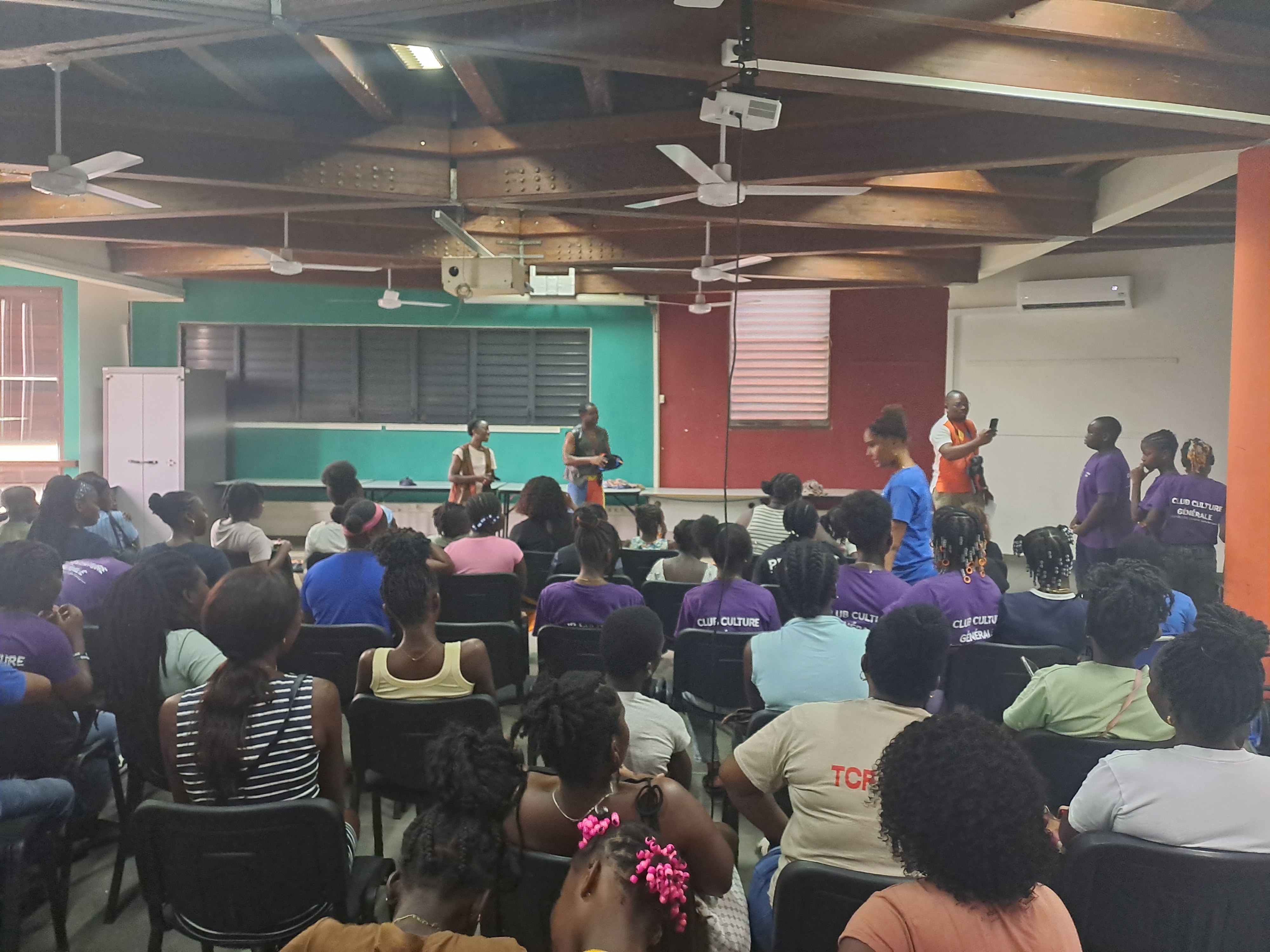 Puis, les élèves de M Diangone et M.Kojo - le club de culture générale - ont assuré ensuite une rencontre en interrogeant les artistes Kimmy Amiemba et Christian Tafanier sur leurs parcours, leurs motivations et futurs projets. Ils n’ont pas eu peur de parler devant le public : peut-être de futurs comédiens ?